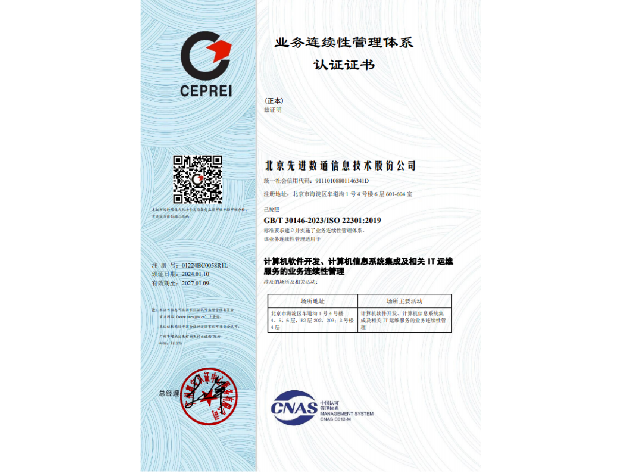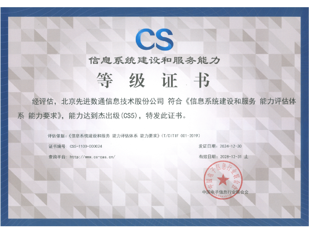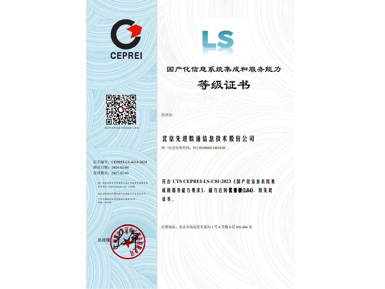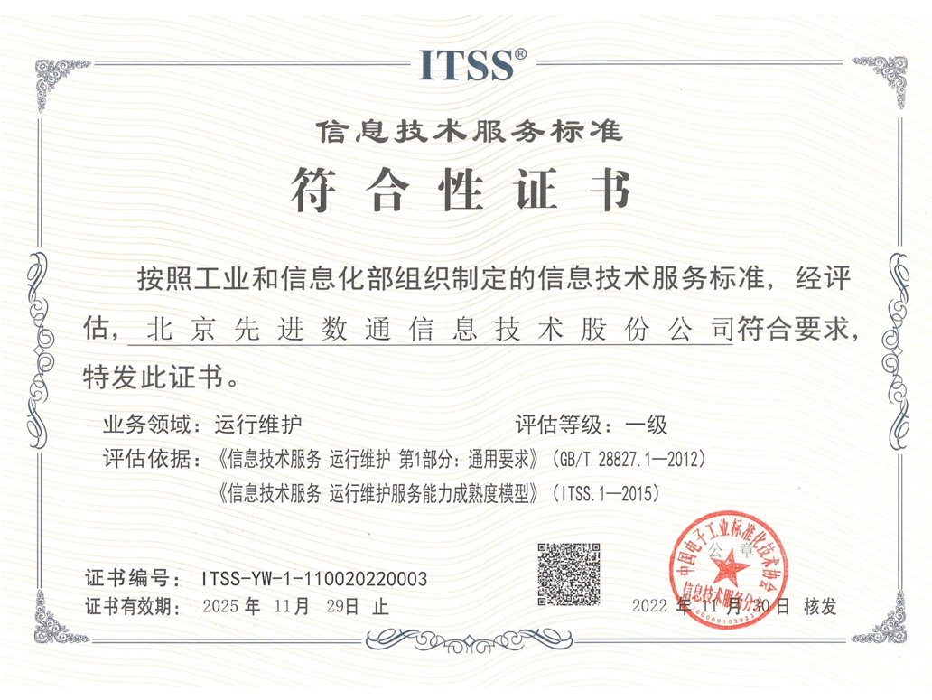 米兰(中国)AC米兰先后取得CMMIL5、软件能力成熟度五级(SPCA 5)、信息系统建设和服务能力评估体系(CS)5级、ITSS成熟度一级、信息系统安全集成服务资质二级、信息系统安全运维服务资质二级、国产化信息系统集成和服务能力评估四级(LS4)、北京市企业技术中心等资质认证,并取得ISO9001、ISO20000、ISO27001、ISO14001、ISO45001、ISO22301、ISO37001、ISO28001、GBT29490、SA8000等标准体系认证,具备行业领先的技术开发、工程实施及服务保障能力。