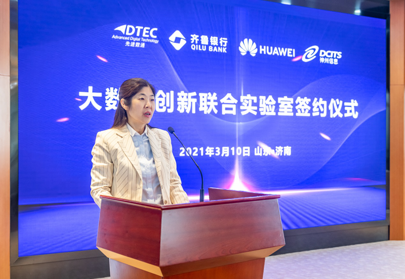 齐鲁银行副行长葛萍女士在“大数据创新联合实验室揭幕仪式致辞中表示,齐鲁银行在数字化转型开展的大潮中,始终坚持以科技手段支撑“服务地方经济、服务中小企业、服务城镇居民的业务开展目标,将科技赋能作为创新开展的重要驱动力,将数字化转型纳入全行开展战略规划,并确定了“业务线上化、服务场景化、决策智能化、系统平台化、科技敏捷化的数字化转型目标。期望大数据创新联合实验室将成为连接齐鲁银行与大数据研发企业及研究组织的平台,为全行业务开展和数字化转型注入新的动能,打造成省内,乃至全国中小银行大数据生态合作的典范。